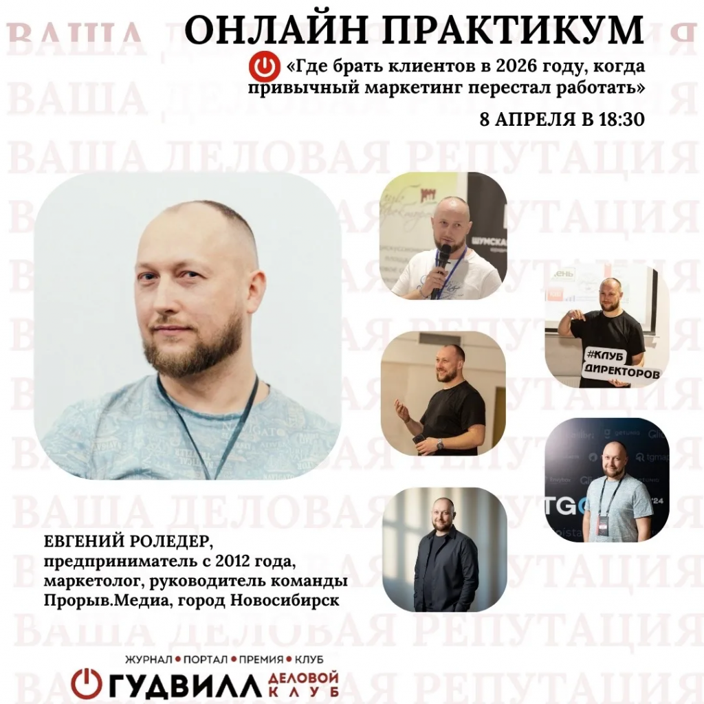8 апреля в 18:30 клуб «Гудвилл» проведёт онлайн-практикум для предпринимателей и руководителей, посвящённый поиску клиентов в новых реалиях рынка.